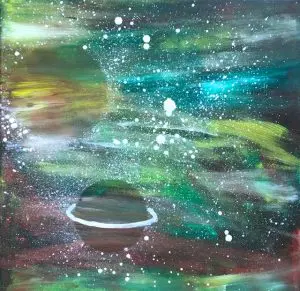 Wir malen dieses Mal das Universum mit Raketen, Außerirdischen und Ufos.
