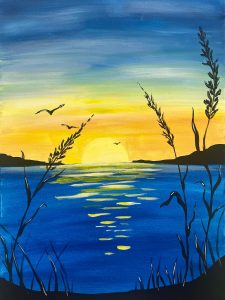 Wir malen in entspannter Atmosphäre und erschaffen einen Sonnenuntergang am Meer in Acryl. Entspannen, Träumen und an die schönen Sommerabende erinnern.